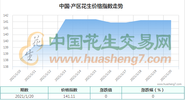 本日產(chǎn)區(qū)花生指數(shù):141.11,較昨日無漲跌。
