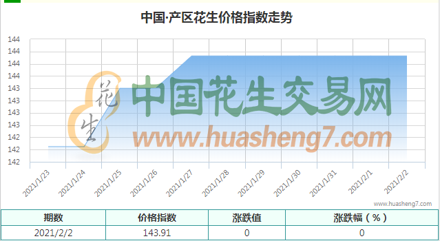 本日產區花生指數:143.91,較昨日無漲跌。
