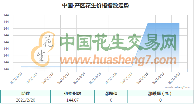 本日產(chǎn)區(qū)花生指數(shù):144.07,較昨日無漲跌。