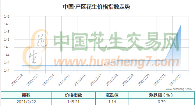 本日產區花生指數:145.21,較昨日上漲1.14點,漲幅為0.79%。