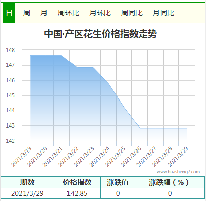 本日產(chǎn)區(qū)花生指數(shù):142.85,較昨日無(wú)漲跌。