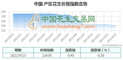 本日產區花生指數:124.05,較昨日下跌0.36%。