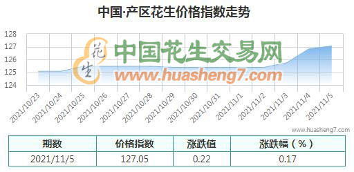 本日產區花生指數:127.05,較昨日上漲0.17%。