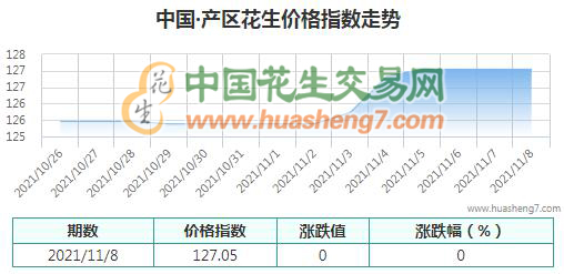 本日產區花生指數:127.05,較昨日無漲跌。