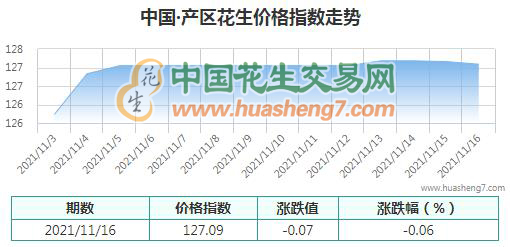 本日產區花生指數:127.09,較昨日下跌0.06%。