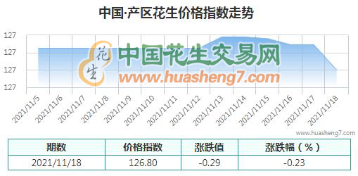 本日產(chǎn)區(qū)花生指數(shù):126.80,較昨日下跌0.23%。