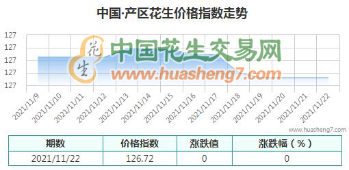本日產區花生指數:126.72,較昨日無漲跌。