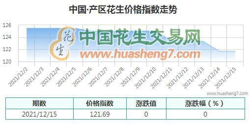本日產區花生指數:121.69,較昨日無漲跌。