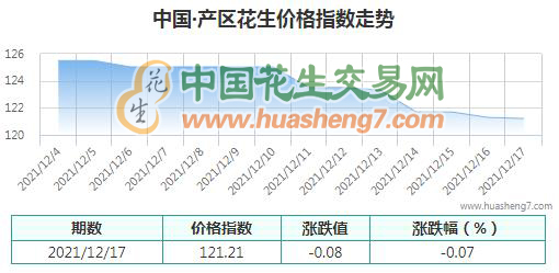 本日產區花生指數:121.21,較昨日下跌0.07%。
