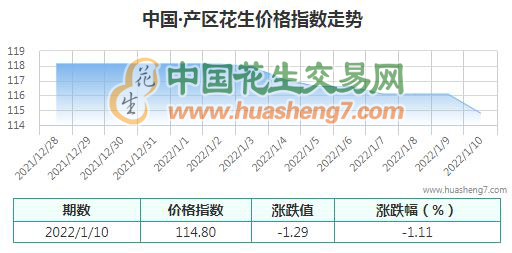 本日產(chǎn)區(qū)花生指數(shù):114.80,較昨日下跌1.11%。